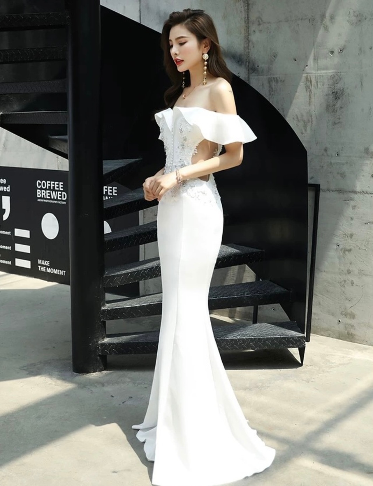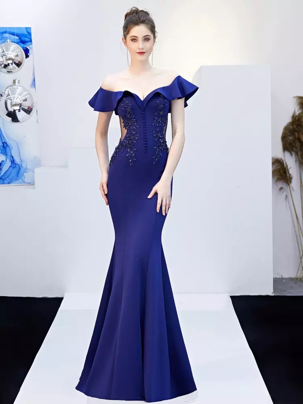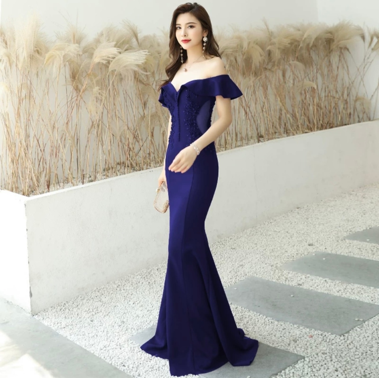 オフショルフリルマーメイドドレス
